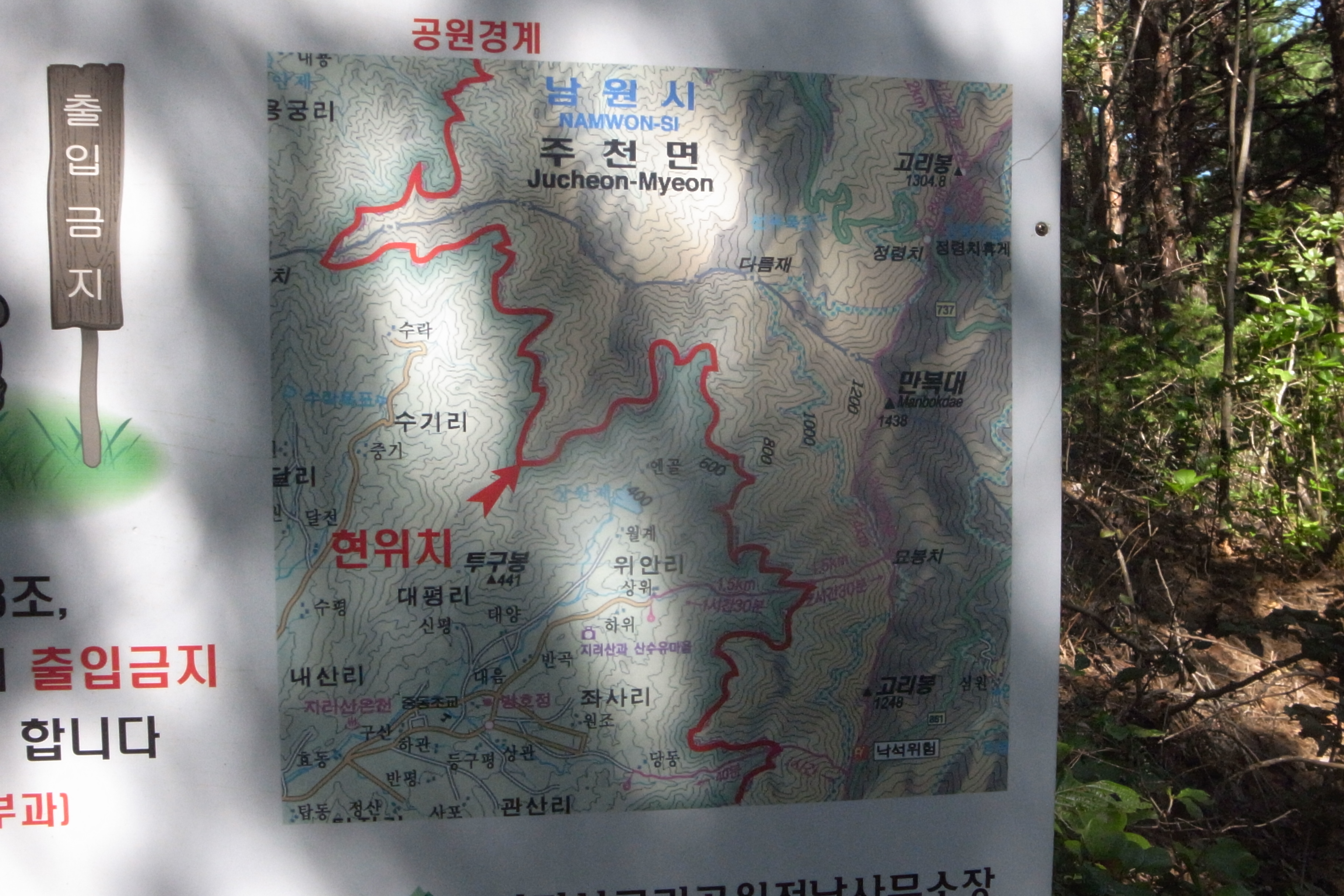 어둑해질 시간이 되기 전에 무조건 하산을 했다. 나중에 확인해보니 주천 고기리쪽으로 하산을 했다.