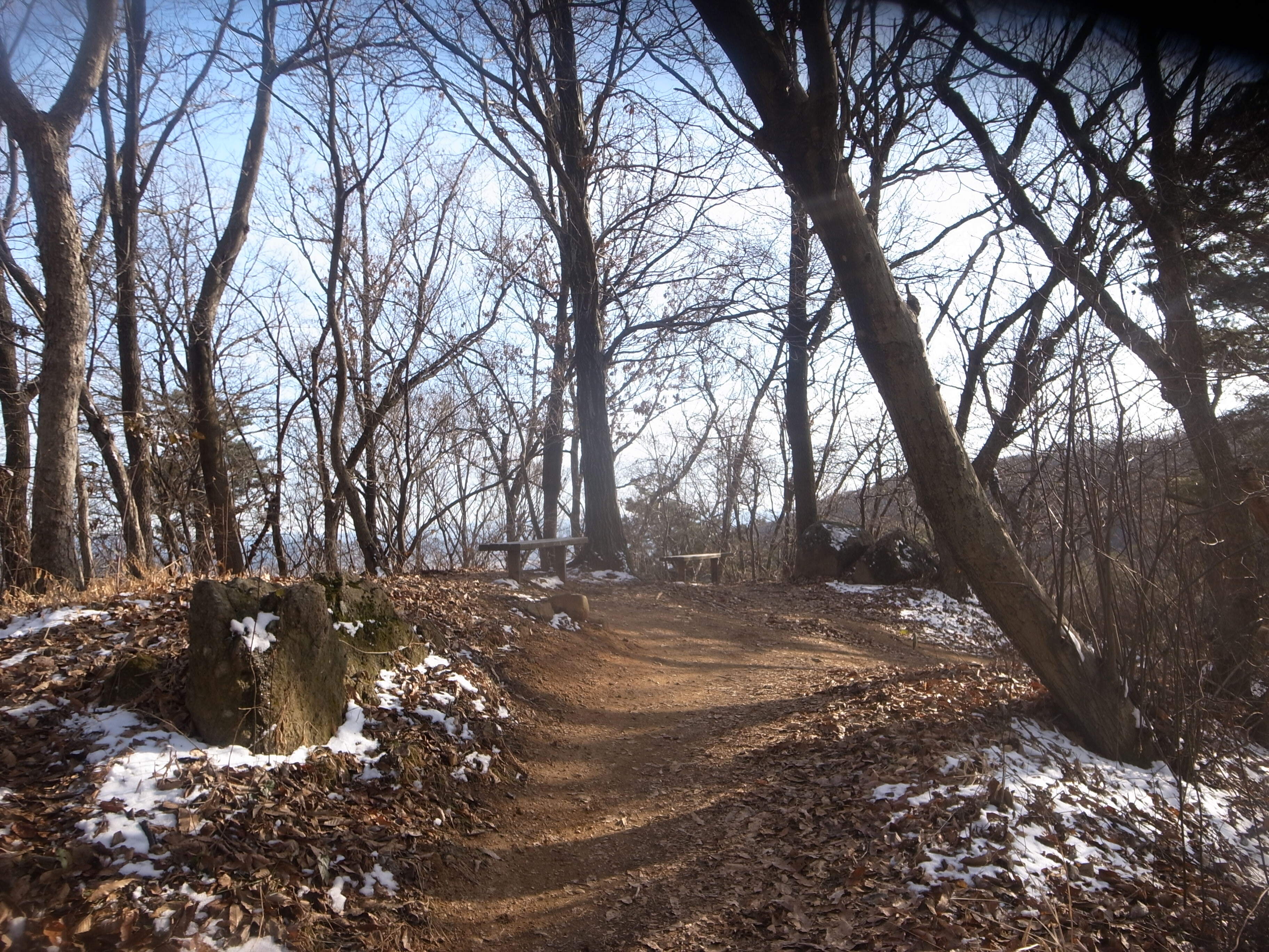 쌀쌀함이 하늘을 더욱 더 시리게 보인다. 동자봉대 오르는 길이 꽁꽁 얼어있다. 조심조심...